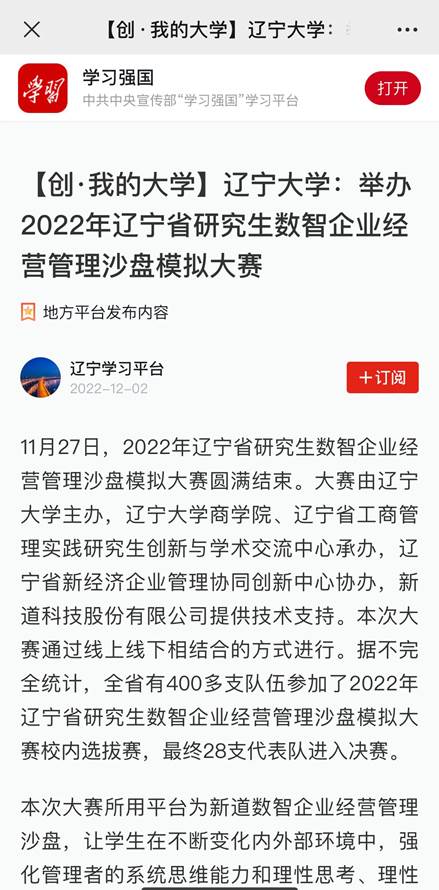 今年会今年会jinnianhui承办的2022年辽宁省研究生数智企业经营管理沙盘模拟大赛报道荣登“学习强国”平台。