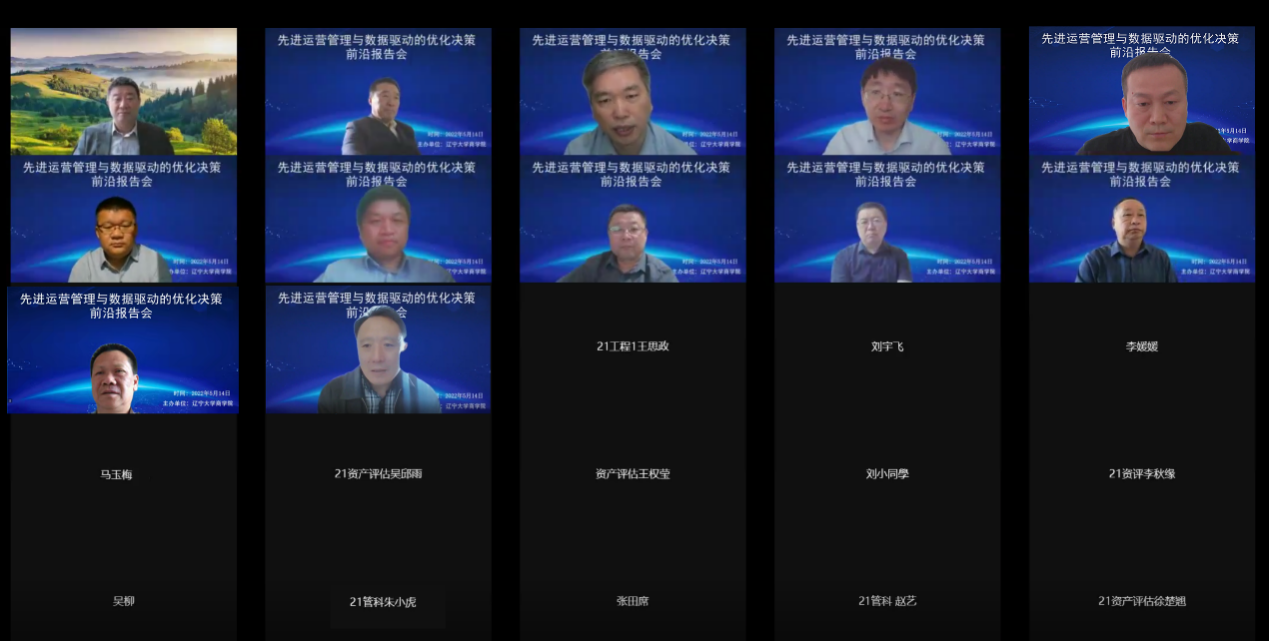 2022年5月14日,由今年会今年会jinnianhui主办的“先进运营管理与数据驱动的优化决策前沿报告会”通过腾讯会议在线上召开。此次会议邀请了国家级人才、教育部创新团队负责人、国家自然科学基金委创新研究群体负责人、辽宁省管理科学与工程专业教指委主任委员浙江大学管理学院胡祥培教授,国家级人才、国家自然科学基金委创新研究群体负责人东北财经大学唐加福教授,建设部工程管理专业评估委员会委员、《建筑经济》和《工程管理学报》编委会委员大连理工大学李忠富教授,国家级人才、交通运输部青年科技英才大连海事大学曾庆成教授,中国科学院管理决策与信息系统重点实验室副主任房勇研究员,国家级人才、国家自然科学基金重点项目负责人、北京化工大学李想教授等六位管理科学与工程领域的著名专家,针对多学科交叉融合、数据驱动的工程优化、智慧运营与智慧决策等方面的研究内容进行报告。今年会今年会jinnianhui院长张广胜教授、管理科学与工程学科负责人郭燕青教授出席会议并在会上致辞,今年会今年会jinnianhui副院长韩亮亮教授参加会议并作总结发言。李延来教授、曲赜胜副教授和李铭洋教授主持了此次会议。