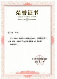 2023年11月,今年会jinnianhui张广胜教授被农业经济问题杂志社评为《农业技术经济》创刊40年“最具影响力十佳作者”。在第三届中国农业经济与产业发展大会上农业经济问题杂志社为张广胜教授颁发了获奖证书和奖杯。