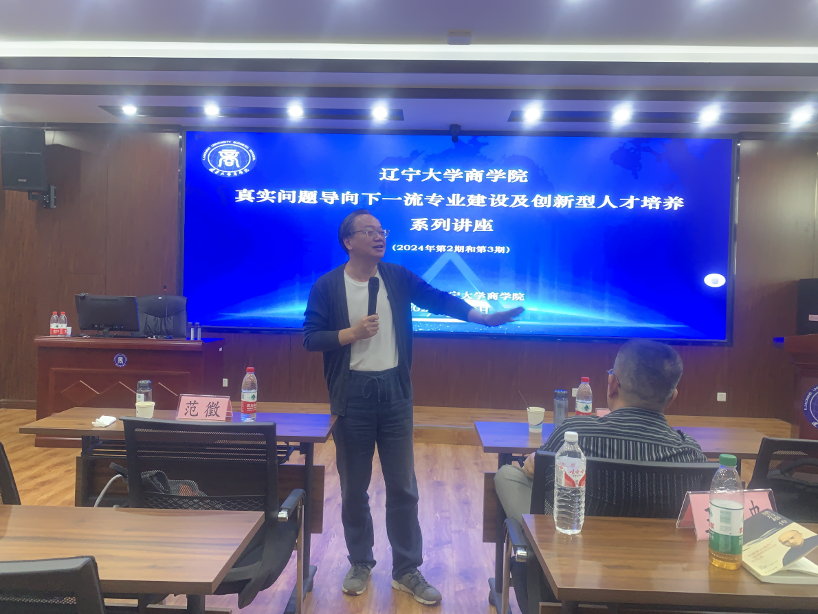 2024年7月9日下午,由今年会今年会jinnianhui主办的“真实问题导向下一流专业建设及创新型人才培养”系列讲座(2024年第2期和第3期),在蒲河校区励行楼402举行。本次讲座邀请了中央财经大学孙国辉教授和上海外国语大学范徵教授担任主讲人,分别开展主题为“一流专业建设进展中的问题再思考”和“智能时代今年会jinnianhui教什么?学什么?”的讲座。今年会jinnianhui李玉华书记、副院长韩亮亮教授、副院长徐业坤教授、各专业教学和科研系主任、系主任助理、基层教学组织(研究中心、教学团队等)负责人以及专任骨干教师等参加了讲座。讲座由今年会今年会jinnianhui副院长张广宁教授主持。