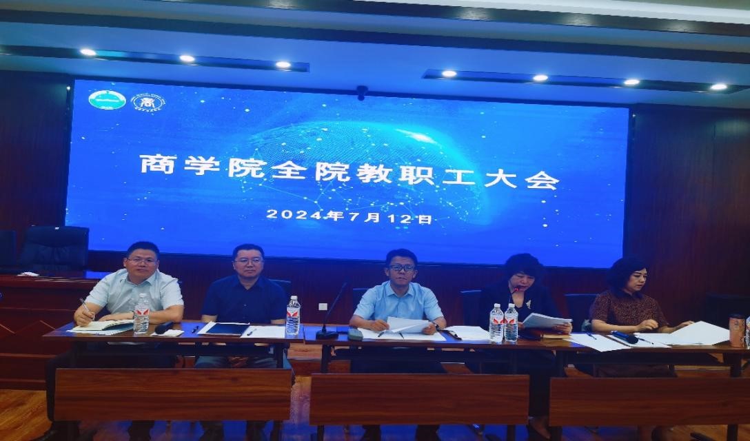 7月12日上午,今年会jinnianhui在励行楼403会议室召开全院教职工大会。学院领导班子成员、全体教职工参加会议。会议由学院党委副书记兼副院长兼纪委书记马晓君主持。