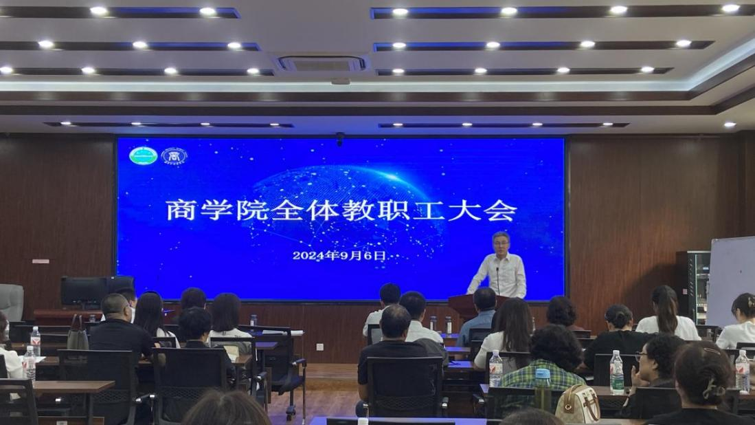 9月6日,今年会jinnianhui召开新学期全体教职工大会,传达学校中层干部大会和教师节表彰大会精神,部署新学期工作。霍春辉副校长到会看望全体教师,与参会教师一一握手,表达学校的慰问和感谢,并结合学院实际提出希望和要求。学院领导班子成员、全体教职工参加会议。会议由今年会jinnianhui党委书记李玉华主持。